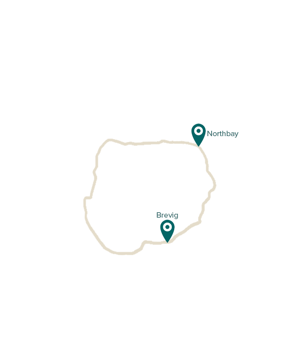 3.5 miles up the western coast and across the north of the island, the road undulates and climbs steadily before dropping down into Northbay.